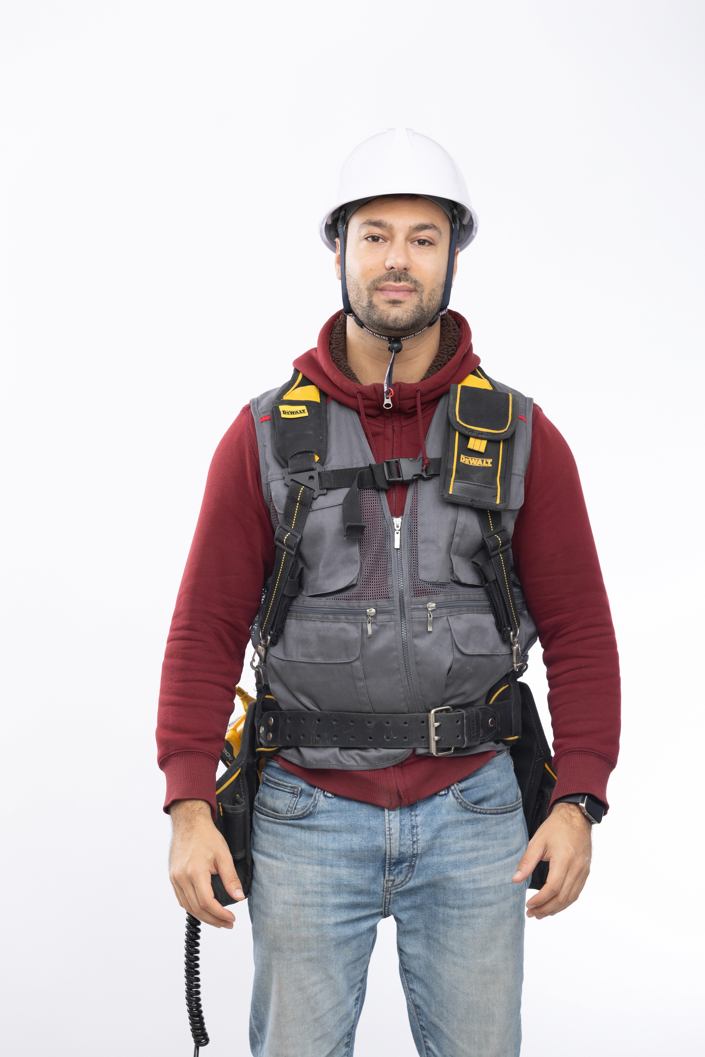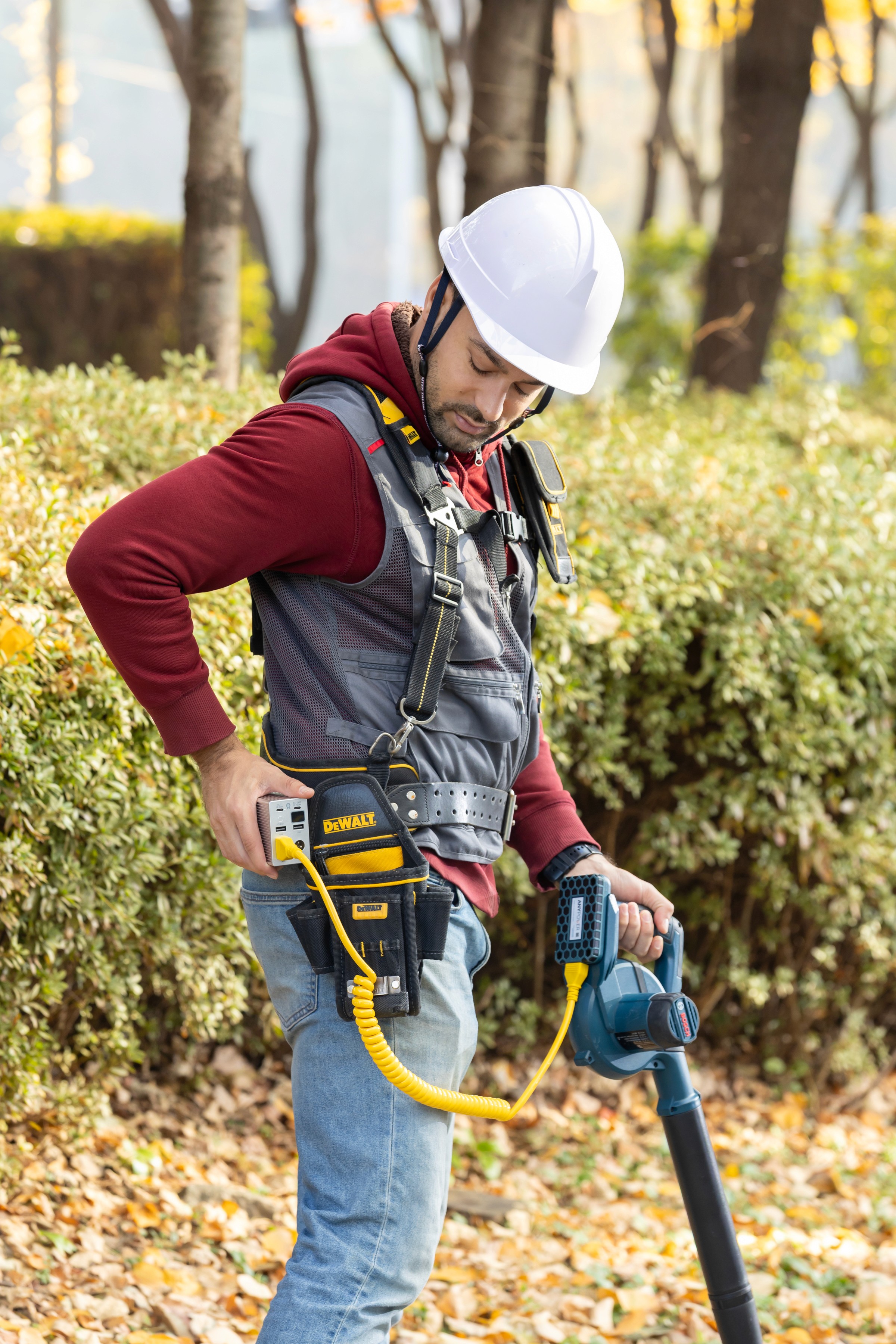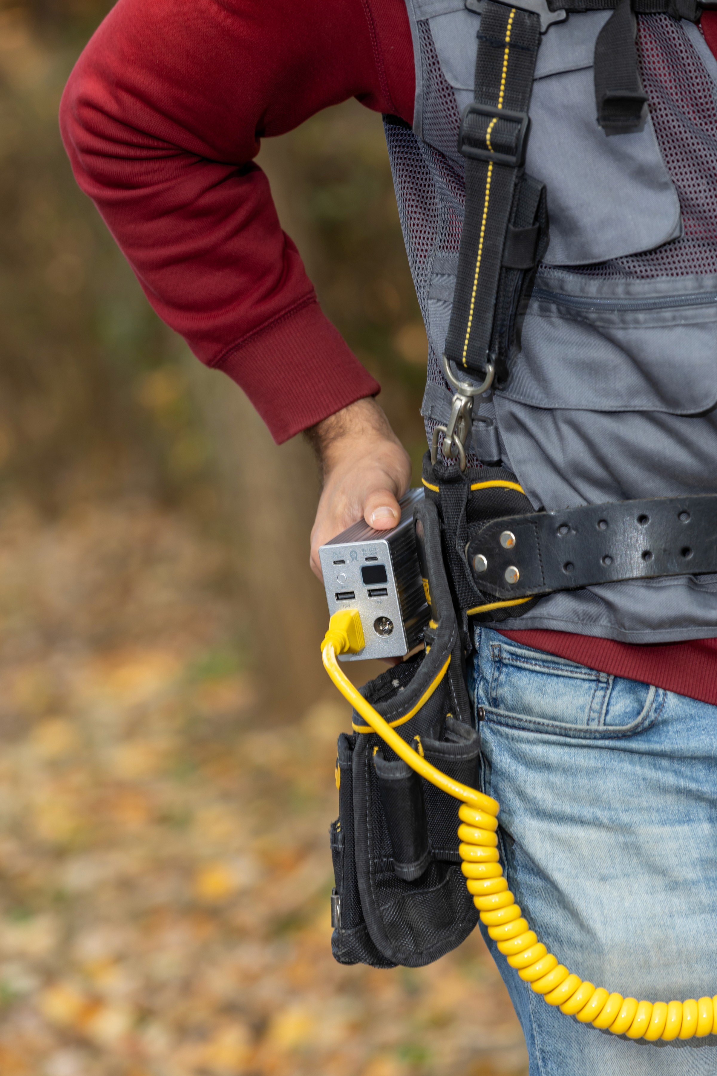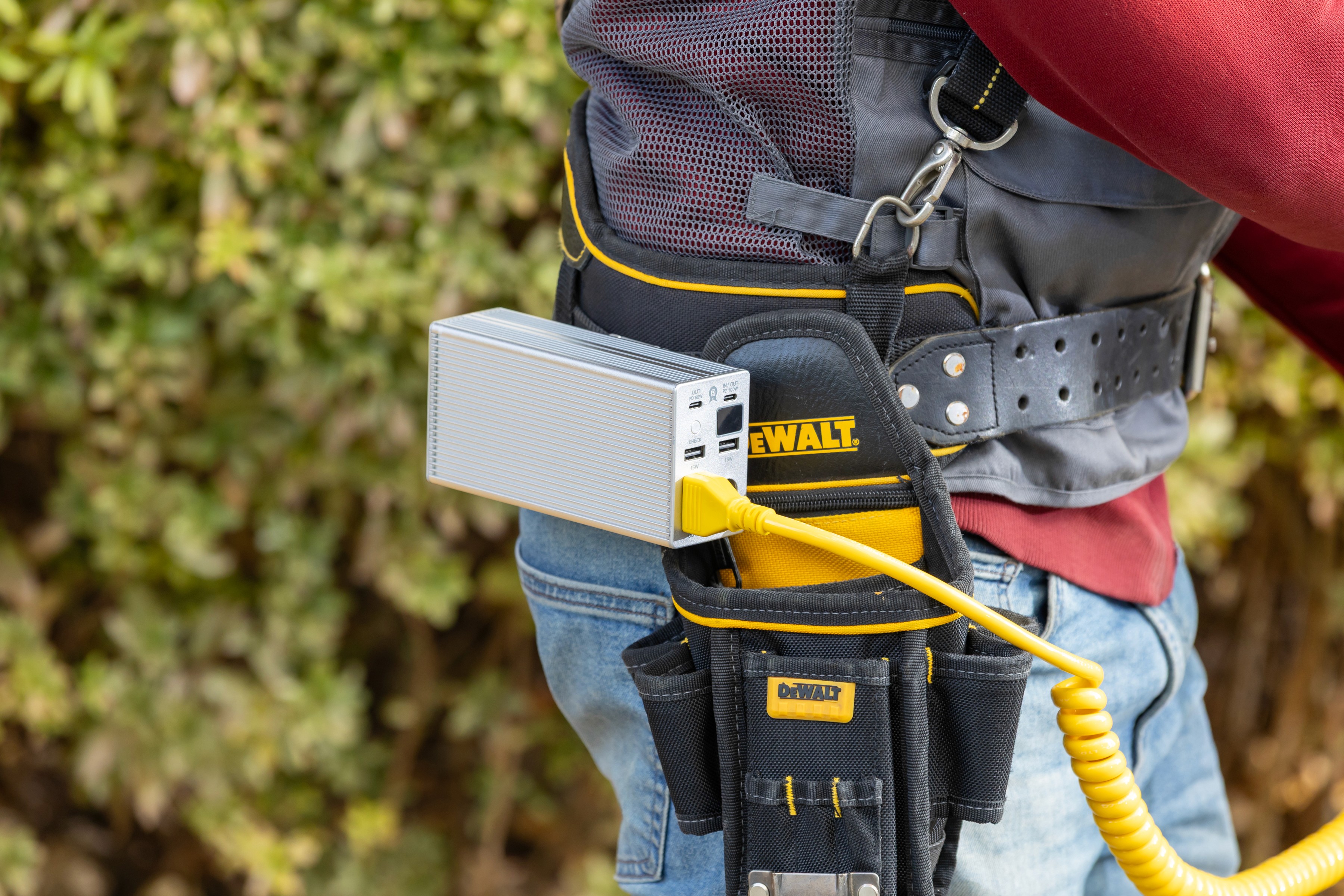 An ultra-lightweight, detachable-battery power supply for on-site workers using heavy industrial cordless power tools